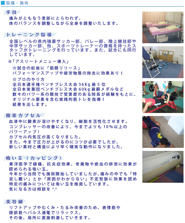 患者様ひとりひとりに合った、迅速かつ最も効果的で丁寧な治療をし、からだ本来の力を取り戻していただくためのお手伝いをしております。